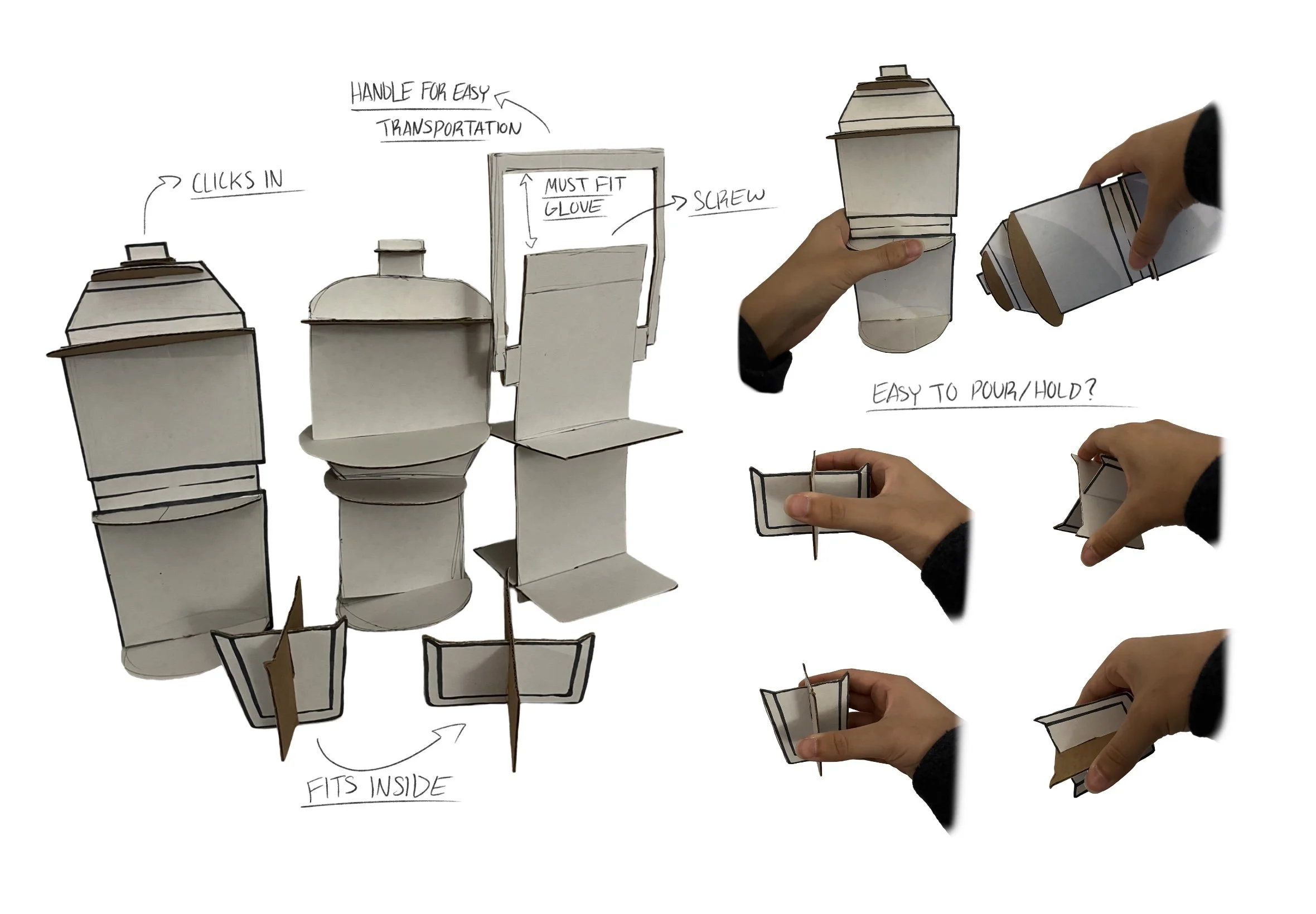 First round of models centered around figuring out the overall size of the product as well as what form and type of connecting design would be best.